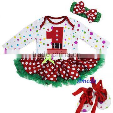 Baby Christmas 1st Santa Colorful Polka Dots Long Sleeves Bodysuit Jumpsuit Pettiskirt Headband Crib Shoes NB-18M