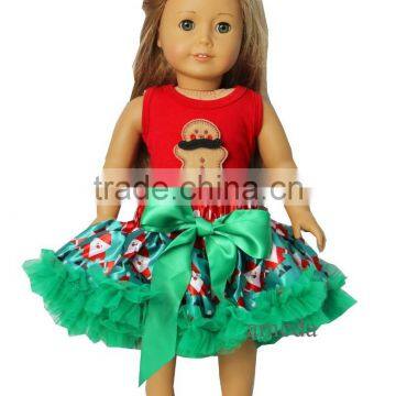 18" Doll Christmas Santa Green Pettiskirt With Mustache Gingerbread Man Red Tank Top