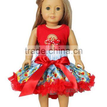 18" Doll Christmas Reindeer Blue Pettiskirt With Gingerbread Man Red Tank Top