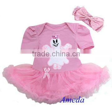 Newborn Baby Halloween Ghost Princess Crown Pink Bodysuit Romper Pettiskirt Tutu Bow Headband 0-18M