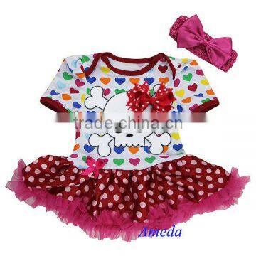 Newborn Baby Colorful Hearts Red Polka Dots Skull Pettiskirt Bodysuit Romper and Headband NB-18M