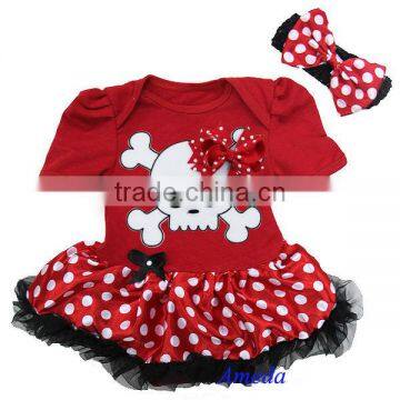 Baby Red White Polka Dots Skull Pettiskirt Bodysuit Romper and Headband NB-18M