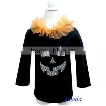 Halloween Pumpkin Face Rhinestone Orange Chiffon Ruffles Black Long Sleeves Top 1-7Y