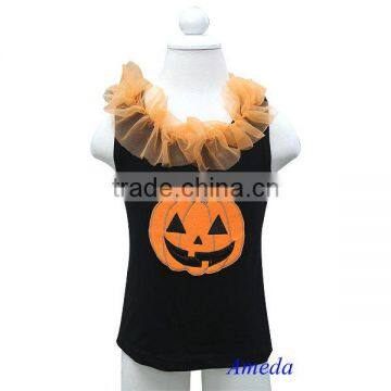 Halloween Pumpkin Face Orange Chiffon Ruffles Black Tank Top 3M-10Y