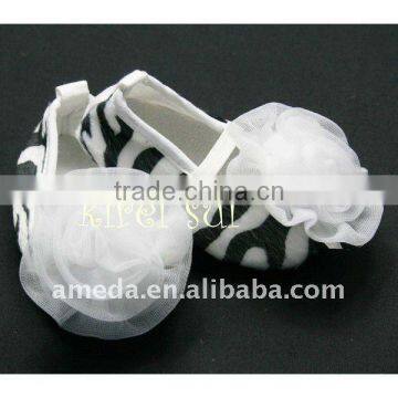 Baby Girl Zebra Crib Shoes With White Rosettes 1607