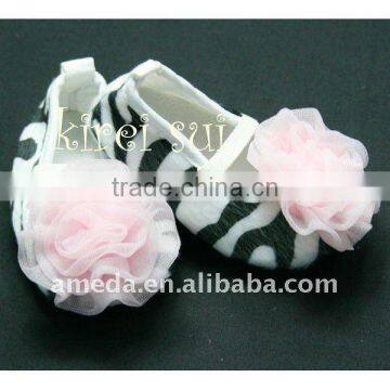 Baby Girl Zebra Crib Shoes With Light Pink Rosettes 1606