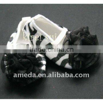 Baby Girl Zebra Crib Shoes With Black Rosettes 1603