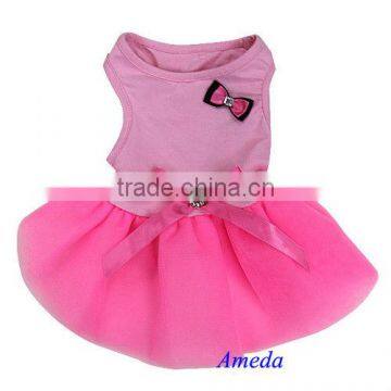 Light Pink Princess Tutu Bow Crystal Belt Small Pet Dog Clothes Party Dress XS-L