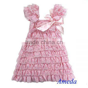 Light Pink Cap Sleeves Lace Ruffles Pettidress Princess One Piece Party Dress 6M-5Y