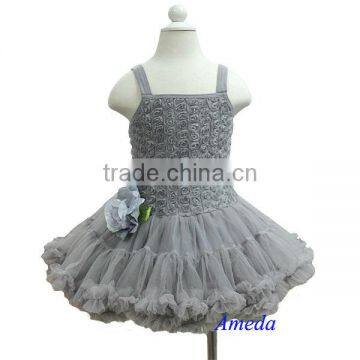 Romantic Silver Rosettes Pettiskirt Wedding Party Flower Girl PettiDress 1-7Y