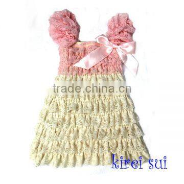 Light Pink Ivory Cap Sleeves Lace Ruffles Pettidress