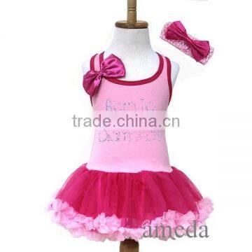Girls Light Hot Pink Rhinestone Born To Wear Diamonds Petti Pettiskirt Dress 1-4Y