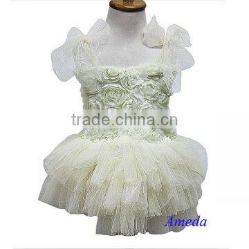 Cream Ivory Rosettes Rose Tutu Party Dress Wedding Flower Girl Pettiskirt 1-7Y
