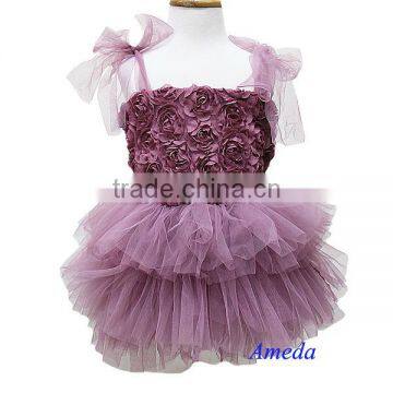 Dusty Pink Rosettes Rose Tutu Party Dress Wedding Flower Girl Pettiskirt 1-7Y