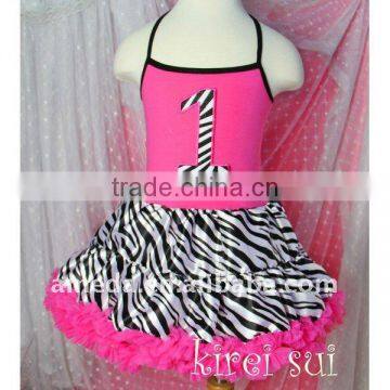 Sleeveless Dress Pettidress One Piece For Girls - Hot Pink & Zebra With Number 1