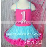 Sleeveless Dress For Girls Birthday - Hot Pink & Turquoise Blue Color With Number 1