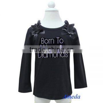 Elegant Rhinestone Born To Wear Diamonds Black Long Sleeves Tee 1-7Y