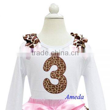 Girls Brown Pink Giraffe 3rd Birthday White Long Sleeves Tee 1-7Y