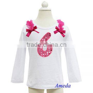 Girls Bling Hot Pink 6th Birthday White Long Sleeves Tee 1-7Y
