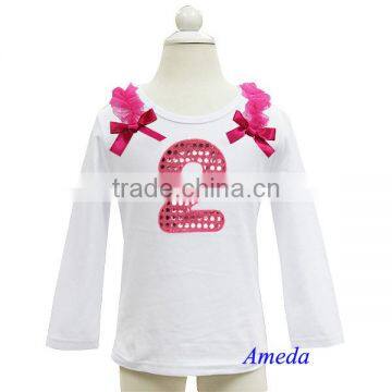 Girls Bling Hot Pink 2nd Birthday White Long Sleeves Tee 1-7Y
