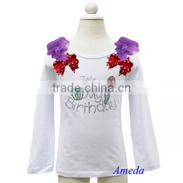 Colorful Bling Rhinestone It's My Birthday White Long Sleeves Top 1-7Y
