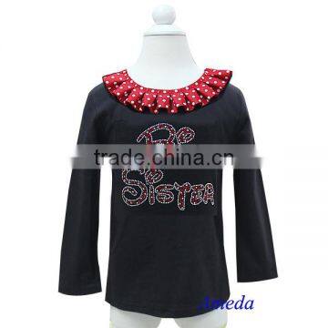 Red Polka Dots Collar Bling Rhinestone Red Big Sister Black Long Sleeves Top 1-7Y