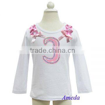 Pink White Polka Dots Ruffles Bling 3rd Birthday White Long Sleeves Top 1-7Y