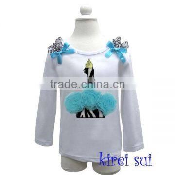 Kids Blue Rosettes 1st Birthday Zebra Cupcake White Long Sleeves Top 1-7Y