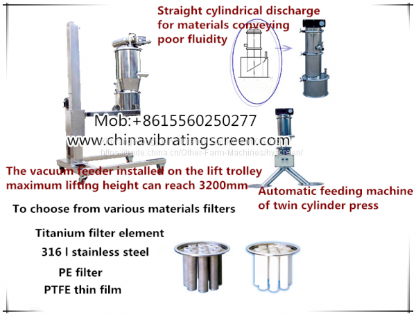 Used for materials feeding for various kinds of sealed containers and equipments such as two-dimension, three dimensions, and double-cone shaped etc.