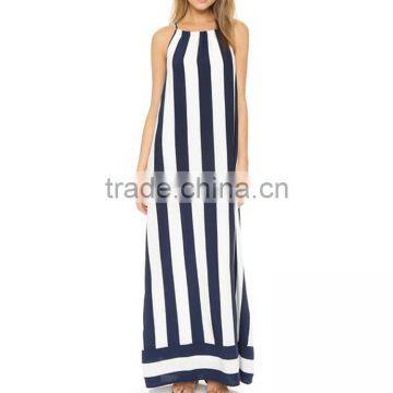 sleeveless stripe long chiffon dress guangzhou clothing manufacture with good quanlity
