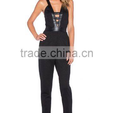 Black Plunging V Neck Sleeveless Jumpsuit for Women 2015
