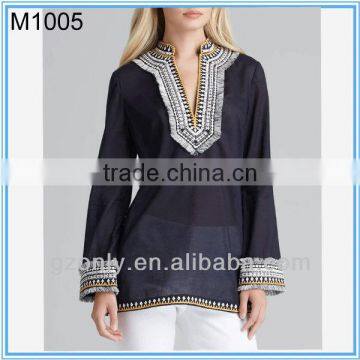 Embroidered Voile Tunic ladies blouse designs100% cotton/linen,or as your follow