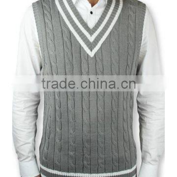 Latest Design V Neck Cable Knitting Sleeveless Man Vest
