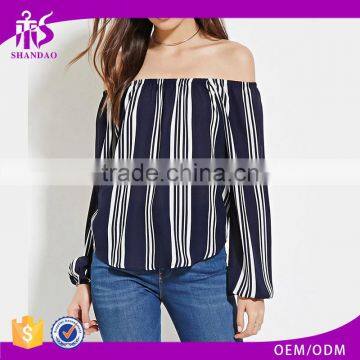 | Product Name | 2016 hot sale yarn dyed cotton summer fashion off shoulder long sleeve ready made blouse |