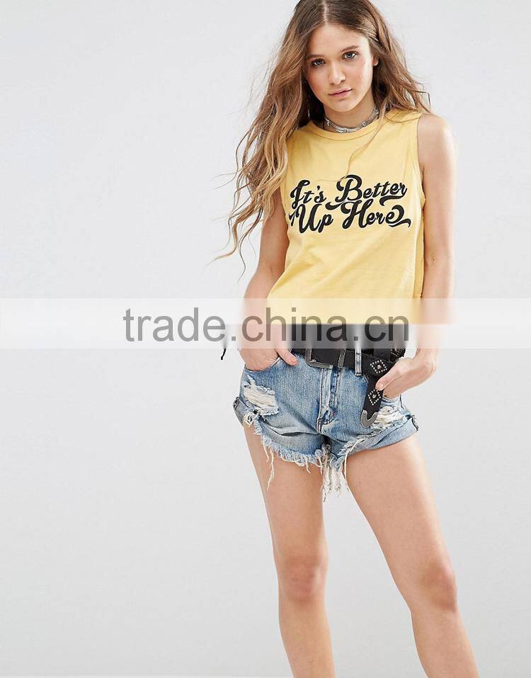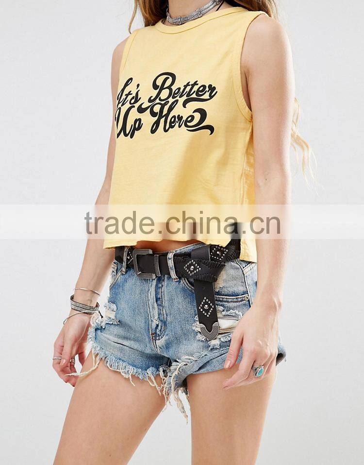 Guangzhou Shandao OEM Wholesale Casual Summer 95% Cotton 5% Spandex Ladies Sexy Printing Breathable Quick Dry Fitness Tank Top |
