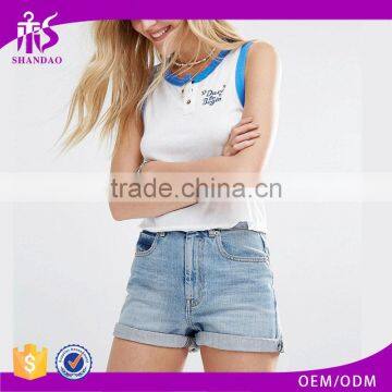 Guangzhou Shandao OEM Service Summer New Design Casual Sleeveless O-Neck White 100% Cotton Women Tank Tops In Bulk