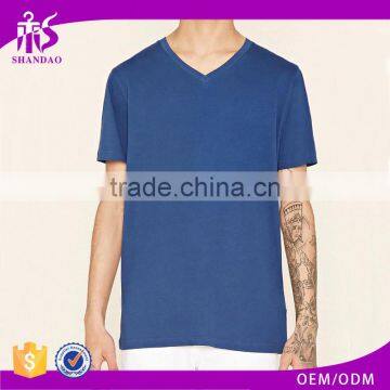 2017 Guangzhou Shandao OEM Summer 180g 100% Cotton V-Neck Short Sleeve Slim Fit Men's T- Shirt |