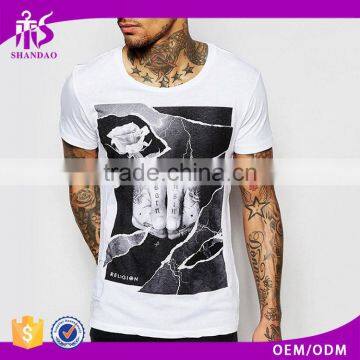 Guangzhou Shandao New Arrival Men 180g 95% Cotton 5% Spandex Summer Short Sleeve T Shirt Tattoo