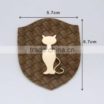 Brown PU leather patch with gold metal alloy cat logo jeans/jacket PLB-014 |