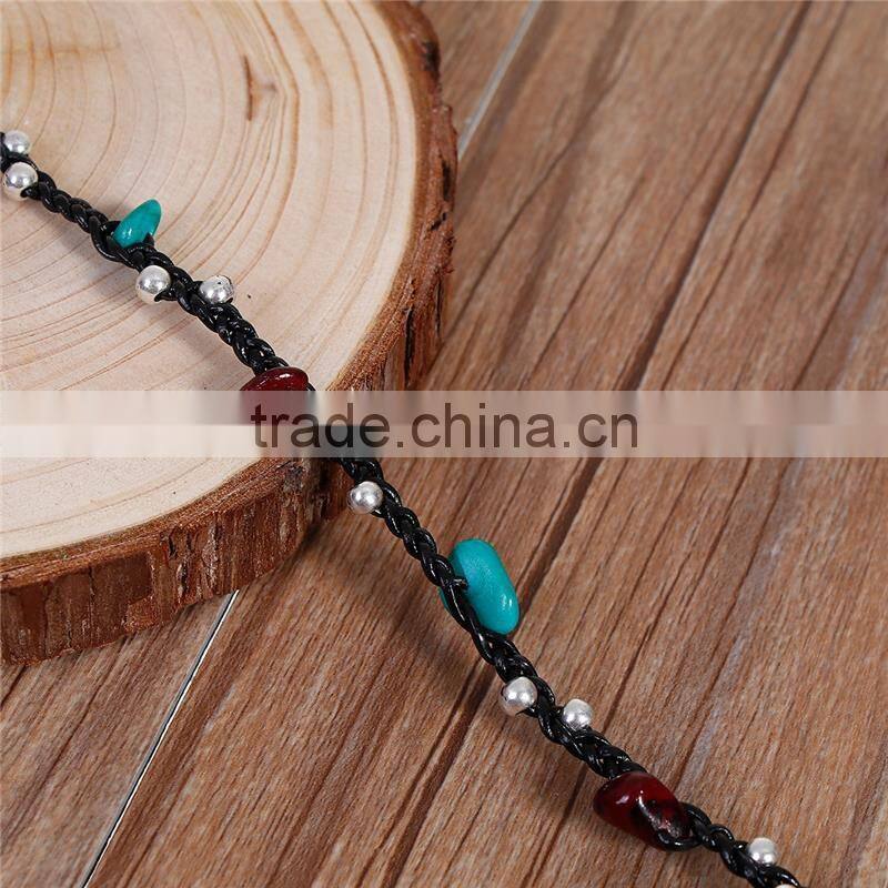 Hand Made Beaded Bracelets Antique Silver Green Blue Irregular Round Women Bracelets Jewelry