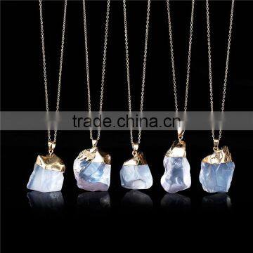 New Fashion Copper Link Cable Chain Gold Plated Clear Natural Quartz Jewelry Pendant Crystal Druzy Necklace