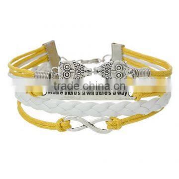 Wax Rope Braiding Bracelets Yellow & White Antique Silver Owl Halloween & Infinity Symbol Findings 18cm