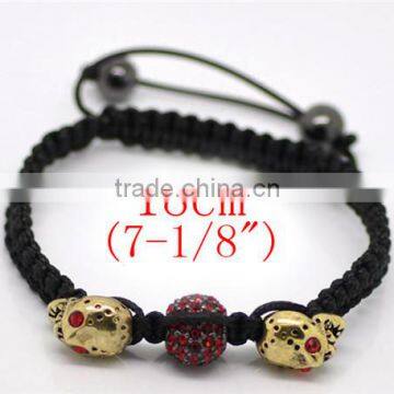 Pave Red Rhinestone Beads & Gold Tone Halloween Skull Beads & Black Braiding Adjustable Bracelets 18cm-25cm