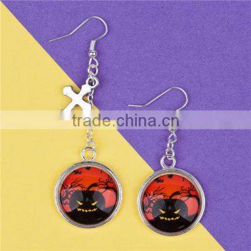 Fashion Silver Plated Cross Pumpkin Resin Halloween Earrings