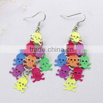 New Fashion Copper Filigree Stamping Earrings Halloween Skull Multicolor Enamel 74mm