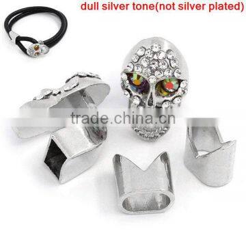 Bracelet End Bar Clasps With Slider For Leather Bracelet Halloween Skull Silver Tone Clear Rhinestone 25x15mm 13x13mm