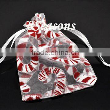 Wholesale W/Draw String White Christmas Candy Cane Organza Wedding Gift Bags