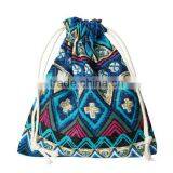 Cotton & Linen Cloth Jewelry Bags Drawstring Multicolor Blue Rhombus Pattern 16cm x 14cm