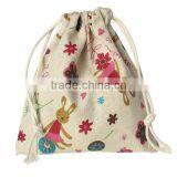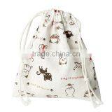Cotton & Linen Cloth Jewelry Bags Drawstring Off-white Cat Pattern 16cm x 14cm