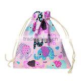 Custom Rectangle Pink Elephant Pattern Cotton & Linen Jewelry Drawstring Bags